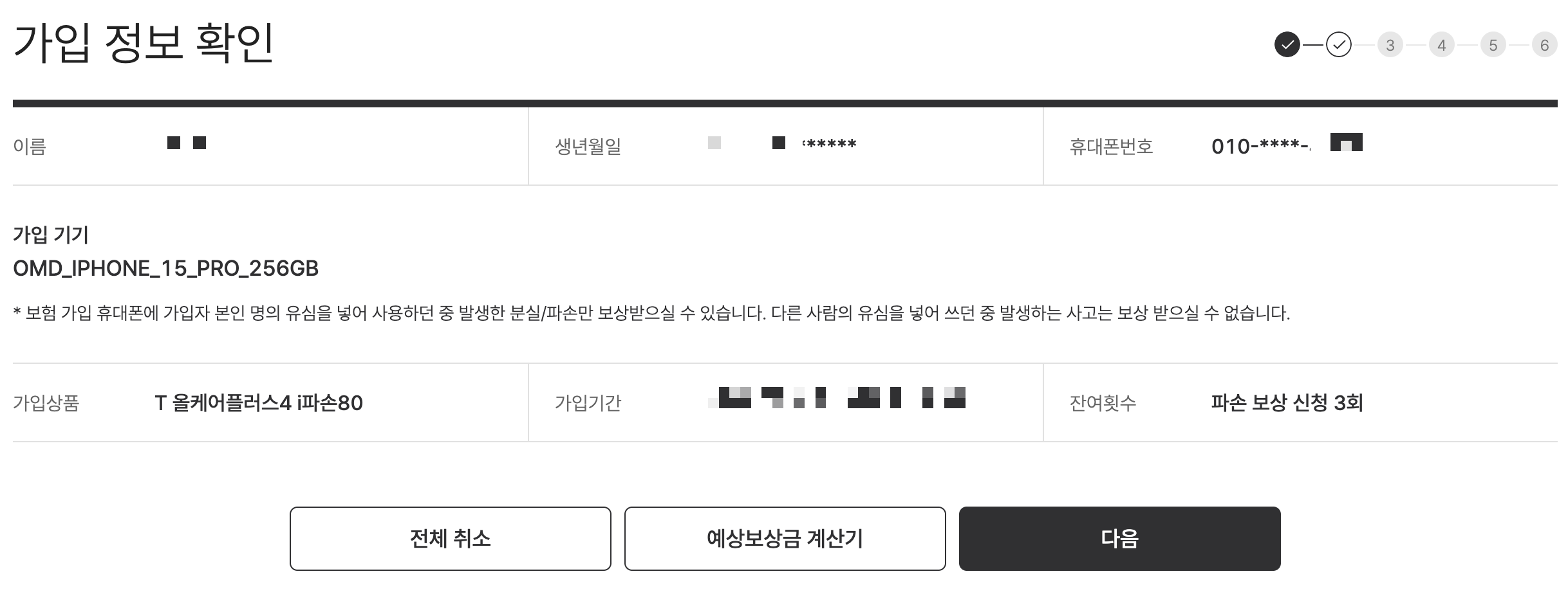 가입한 내용을 확인한 후, 다음 단계로 넘어간다.