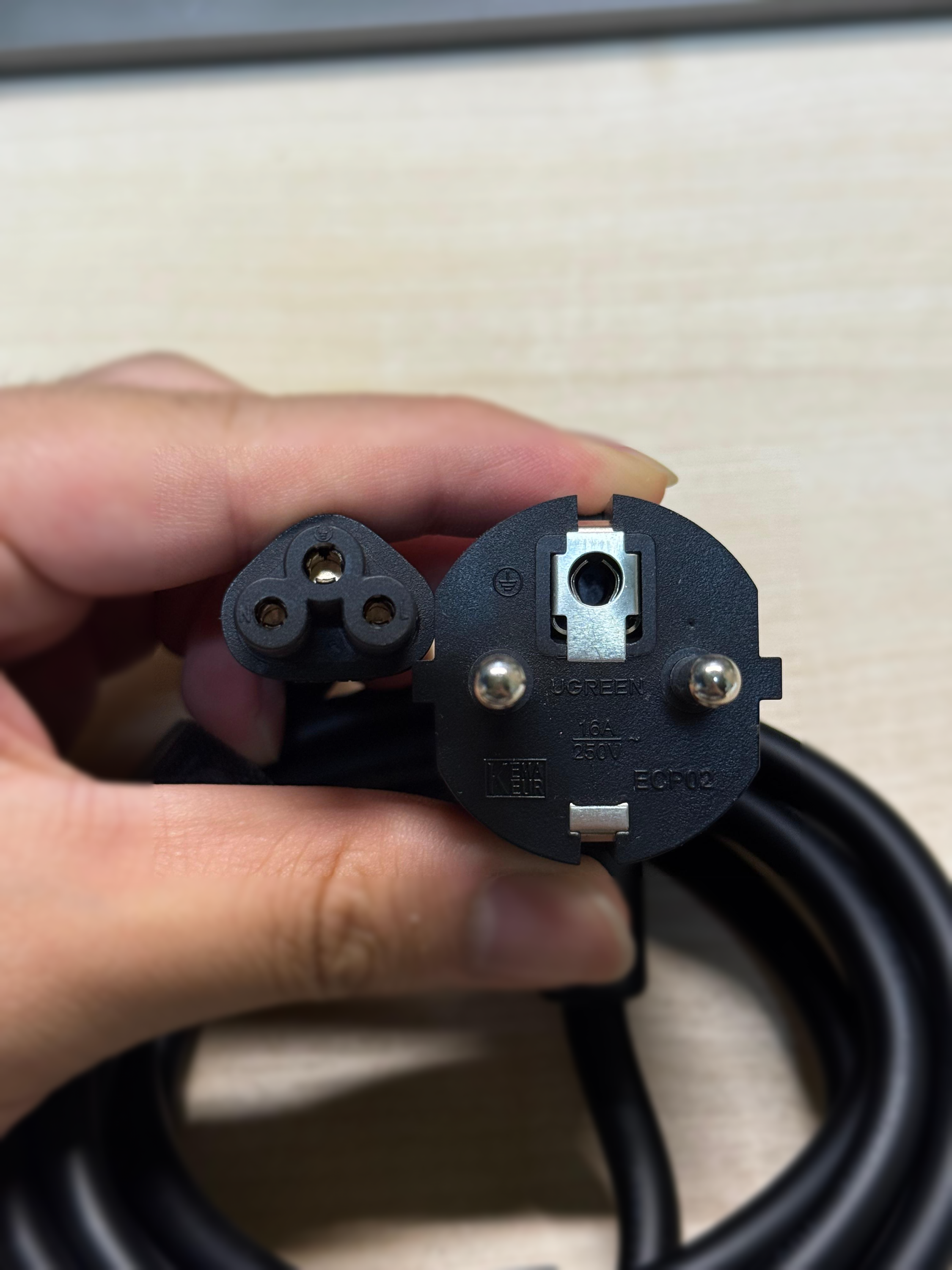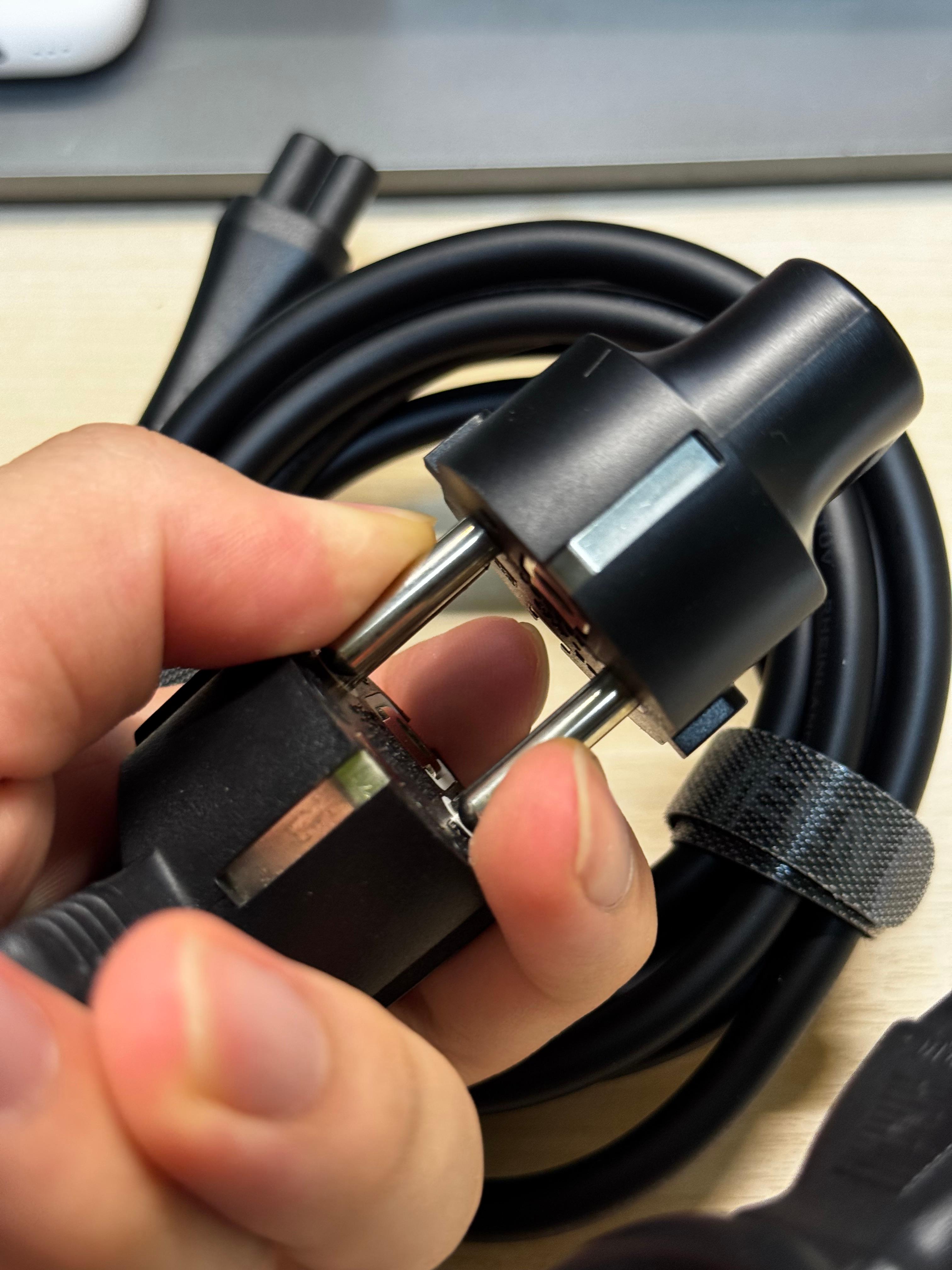필자는 이벤트로 판매되는 상품이 EU 버전밖에 없어 어쩔 수 없이 EU 제품으로 구입했다. 하지만 국내 접지 코드와 크기는 완전히 동일했다. 만약 헐거웠다면 스파크가 튀어 자칫 화재 위험이 있었겠지만, 다행히 그런 문제는 없었다.
