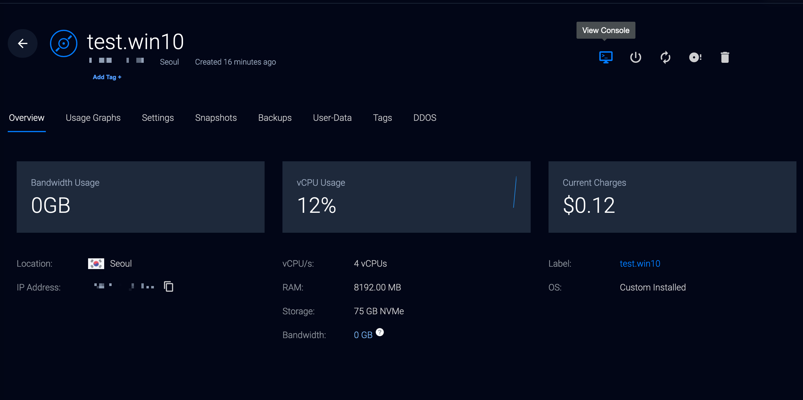우측 상단에 있는 View Console 버튼을 클릭한다.