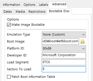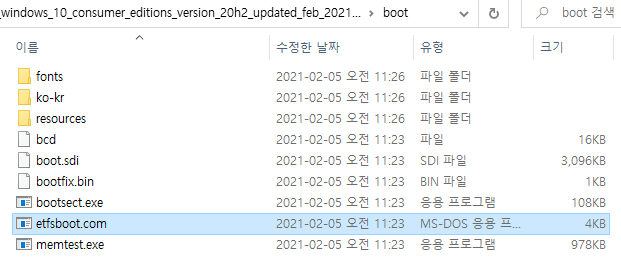 아까 만든 윈도우OS 폴더에 들어가서 boot 폴더 안에 있는 etfsboot.com 파일을 선택하면 된다. (아래 사진을 참고하자)