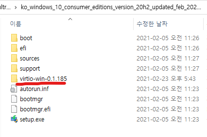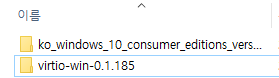 두 번째(virtio-win-0.1.185) 폴더를 첫 번째 폴더 안으로 넣는다.