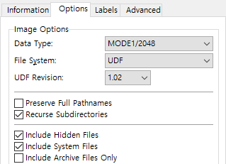 Create image file from files/folders를 클릭한다.