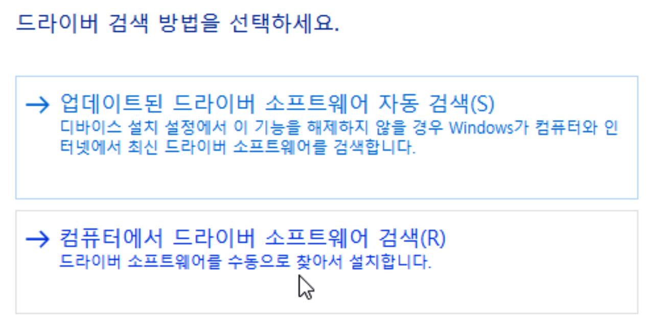 드라이버에서 드라이버 소프트웨어 검색 클릭