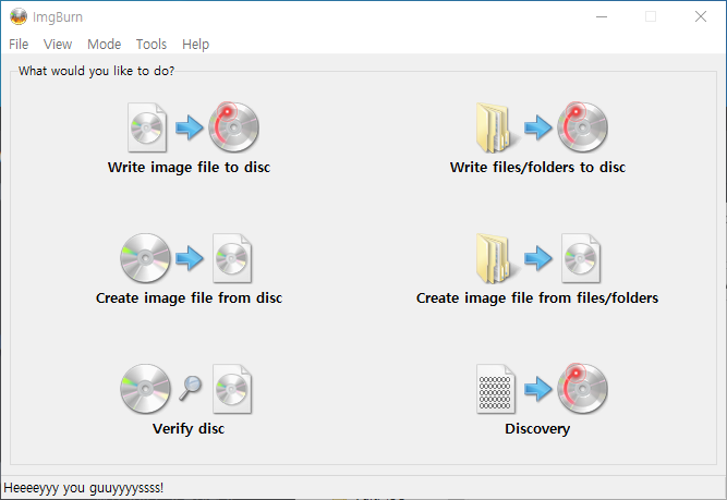 ImgBurn을 실행하면 위 사진처럼 프로그램이 뜬다.