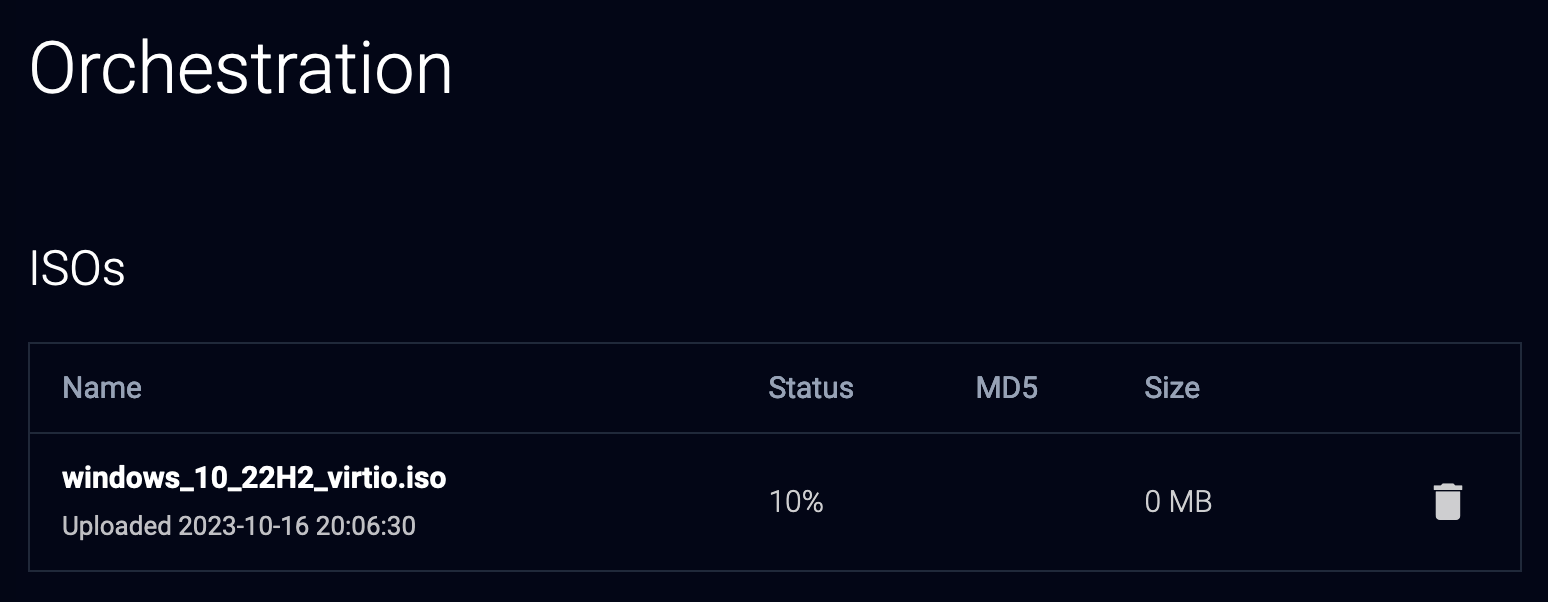 혹시 화면이 이 상태라면 아직 업로드한 ISO가 서버로 입력이 된 상태가 아니기 때문에 조금 더 기다려야 한다.