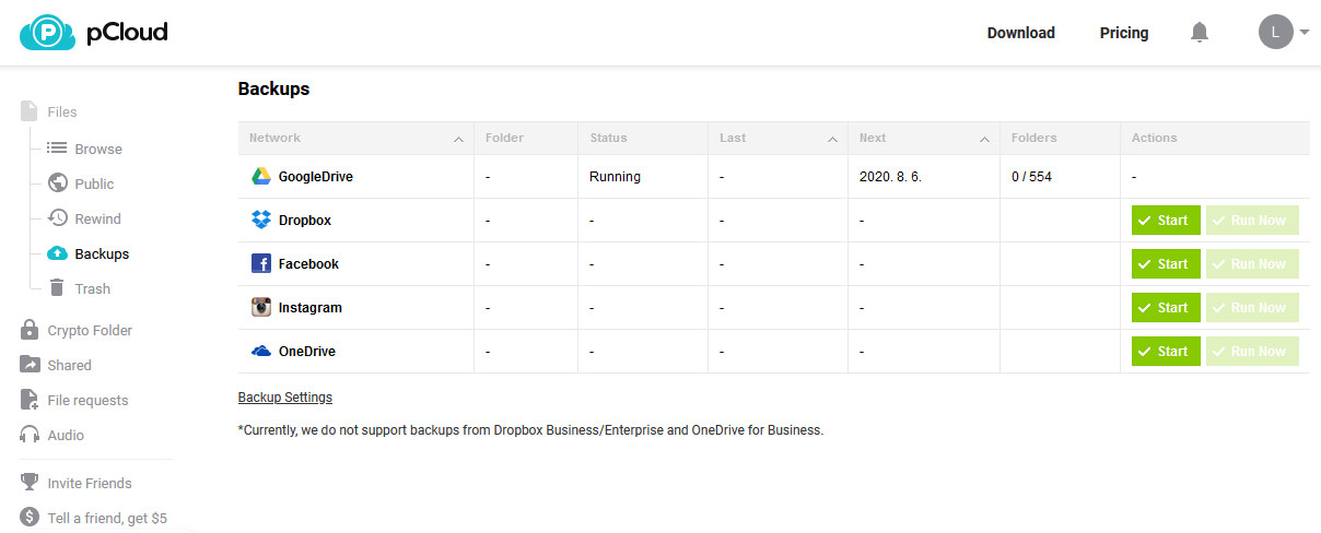 다른 클라우드 파일을 pCloud로 백업할 수 있다.